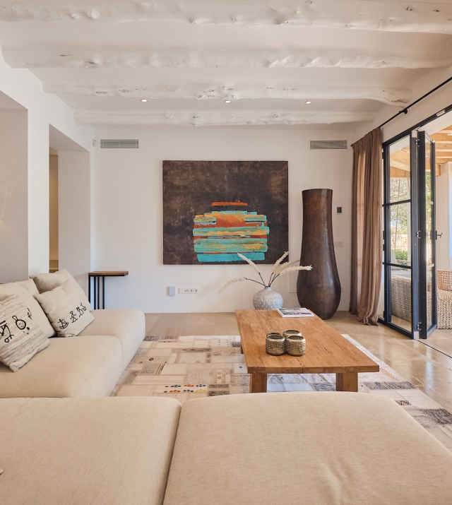 Finca Campos is located on aplot near San Josep, on Ibiza’s west coast. Just minutes from the village of San Josep with its supermarkets, cafés, and restaurants.
