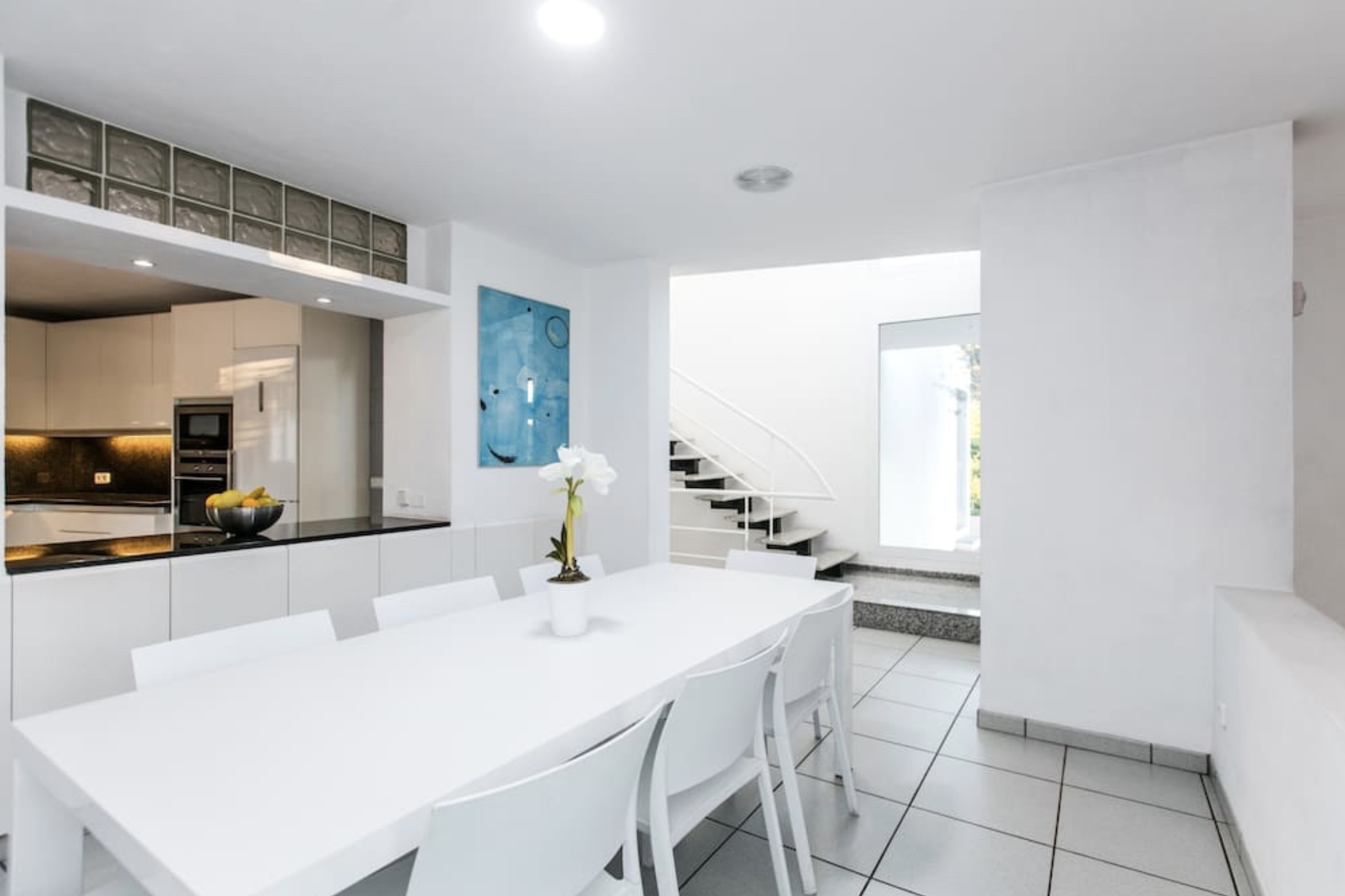 Main floor with a cozy modern living room and kitchen apart with dining area. Nice outdoor living with barbecue, large swimming pool and sun terrace.