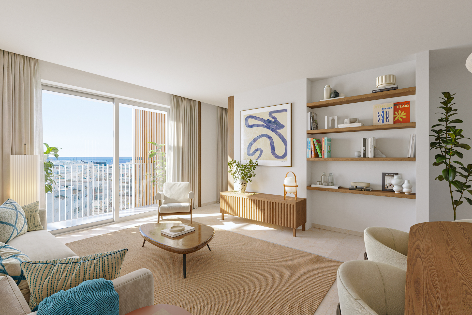 Designed to integrate seamlessly with the natural surroundings, these residences light facades, natural wood accents, and windows that open to stunning outdoor spaces. With a range of apartment configurations from cozy two-bedroom units to spacious three-bedroom layouts and a luxurious penthouse with panoramic sea views—there’s a perfect home for every lifestyle. All apartment will be sold including an complete kitchen with hob, oven, microwave, fridge and freezer from the brand BOSCH or comparable and a Silestone top or similar.